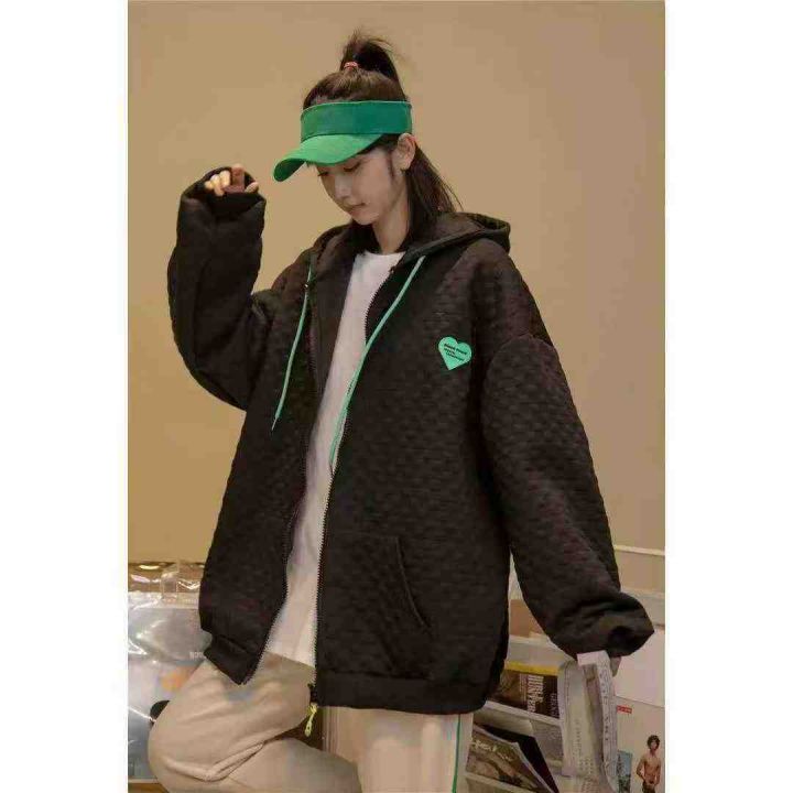 华夫格连帽拉链外套230件9.9,双层帽,大口袋,图案刺...