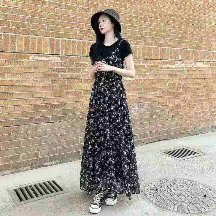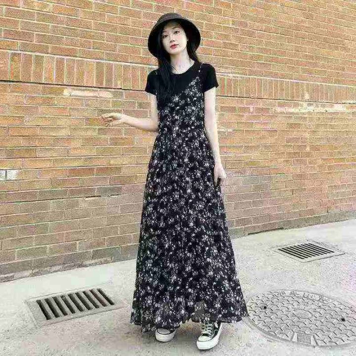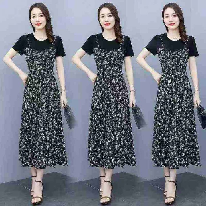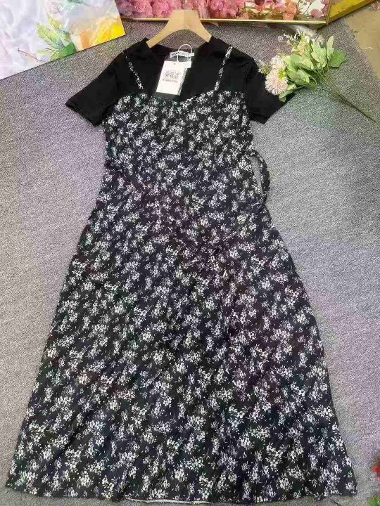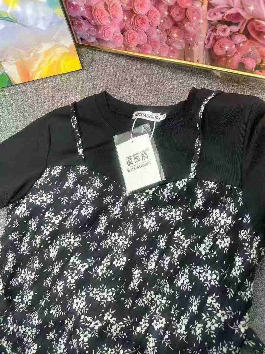 碎花连衣裙女夏季2025新款薄款遮肚显瘦垂坠感假两件裙子,M码110厘米,独立包装,货品干净,M.L.XL.3XL,340件左右,8.8清,分货加1