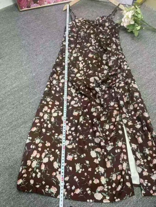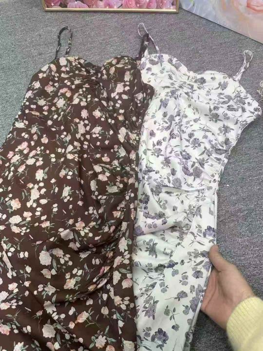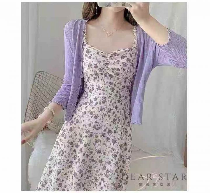 温柔风紫色碎花连衣裙女收腰显瘦小个子吊带裙,模特供参考,整款2色,1到4码,2码裙长105,独立包装,货品干净,570左右,7.8清,分货加1