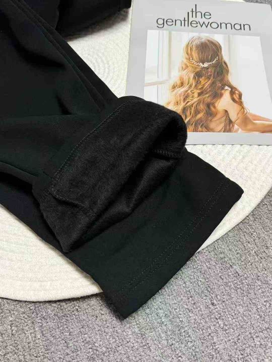 秋冬黑色运动加绒女装直筒休闲裤,面料厚实有质感,有...