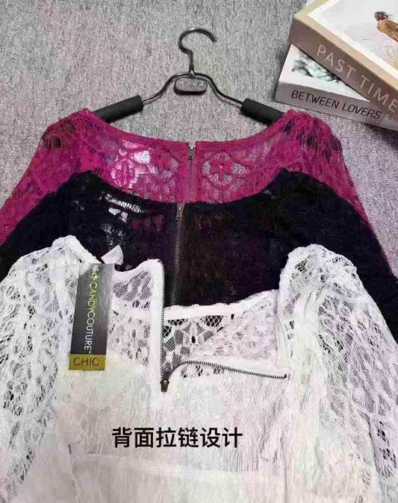 洋气高档网纱蕾丝上衣两件套,整款三色(黑色为主),品质好带吊牌,数量890件左右,码数s-3xl,独立包装,全清5.5,分货0.5