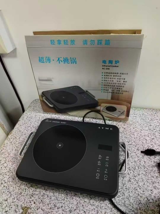 ATME超薄电陶炉 采用全黑晶面板触摸 国标大功率2200W 3小时自由定时 轻松烹饪 带高温hot提醒 4D防水设计 双层包装现货800台