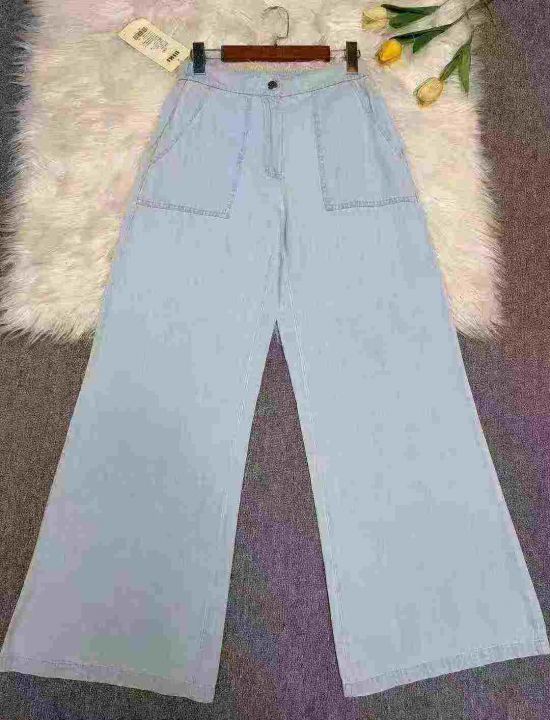 品牌UIKI女士棉麻裤腿加长牛仔宽松阔腿裤300条,黑白...