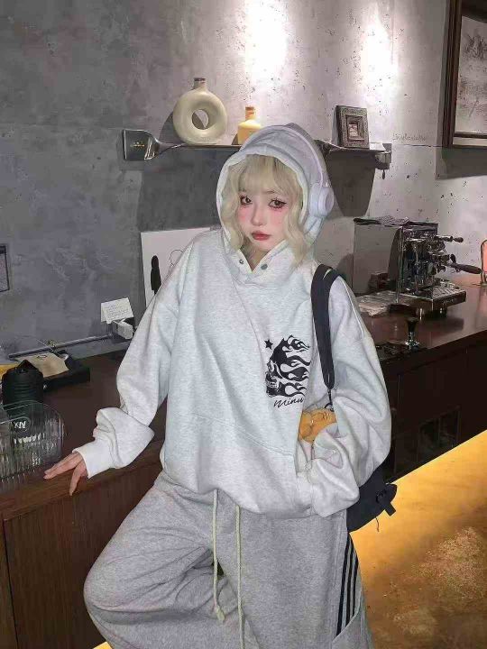 600件左右美式复古休闲套头连帽宽松秋冬连帽加绒卫衣...