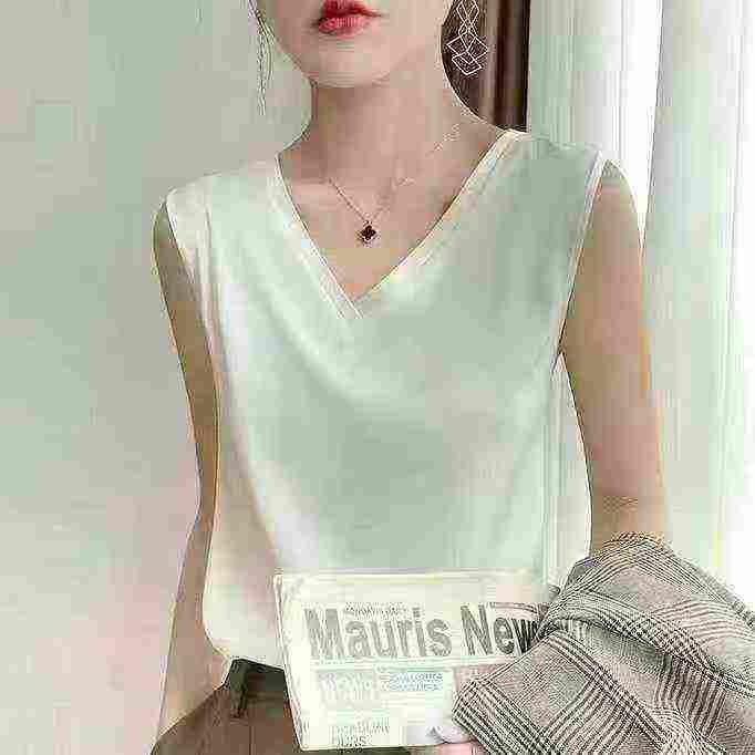 夏季高级感背心女装蕾丝百搭大码显瘦纯色绸缎吊带上衣打底衫,白色不到 50 ...
