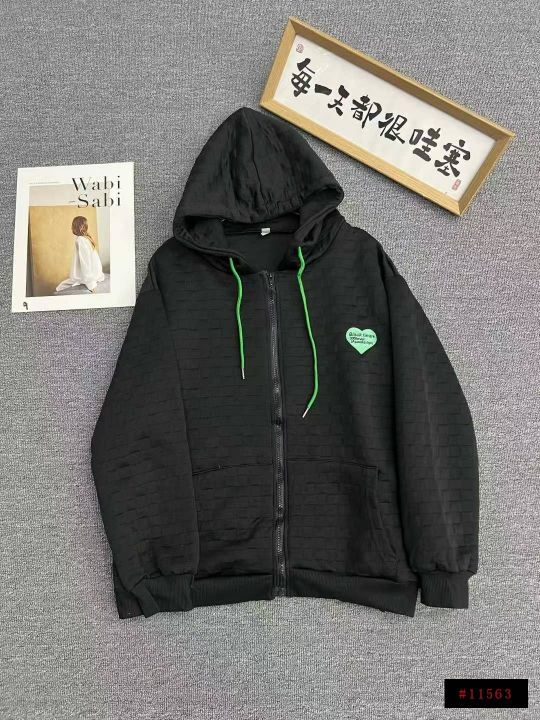 华夫格连帽拉链外套230件9.9,双层帽,大口袋,图案刺绣,情侣款,M码90-12...