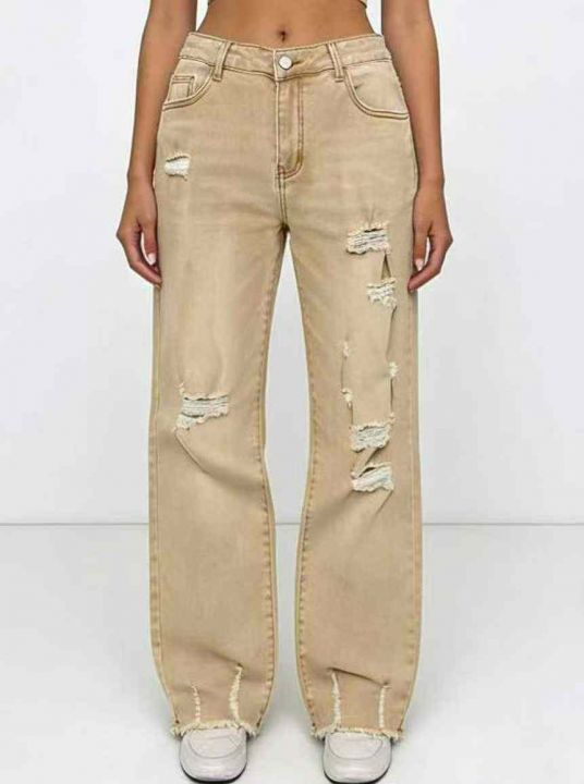 春夏季品牌外贸原单美式宽松复古洗水棉大码女装破洞牛仔裤,独立包装,码数...