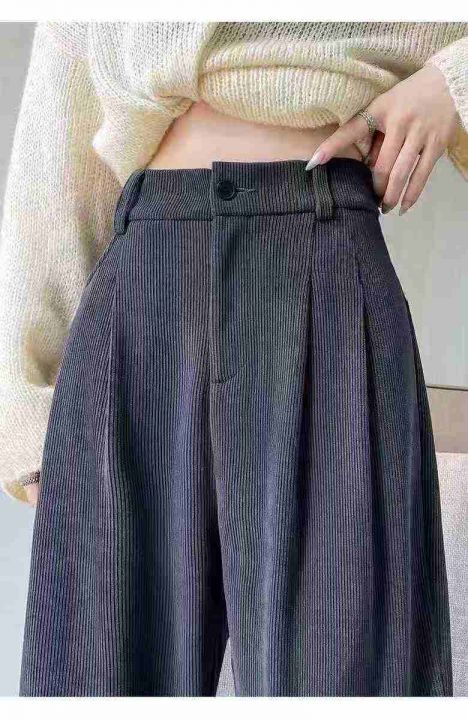 ☆801款,女装灯芯绒高腰宽松直筒女西装裤,761件,S-...