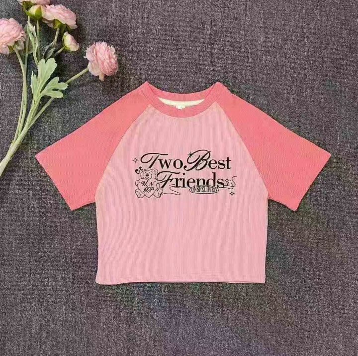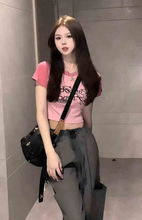 ✅80件辣妹复古撞色高腰短款体恤,尺码S-XL ,面料舒...