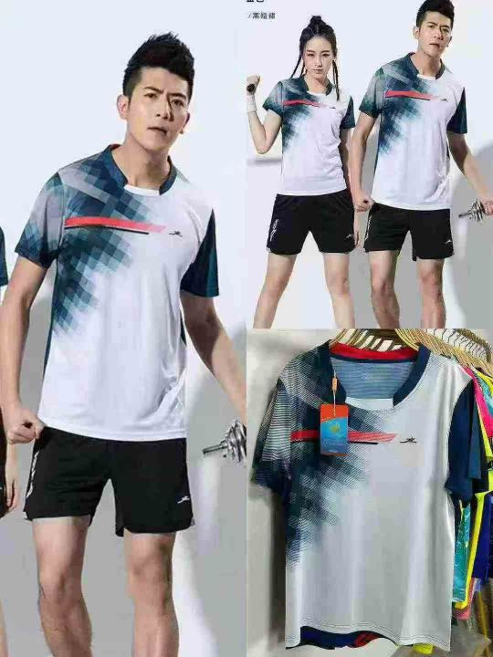 #Men and women t-shirt wholesale品牌羽毛球服男女短...
