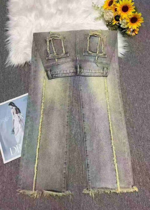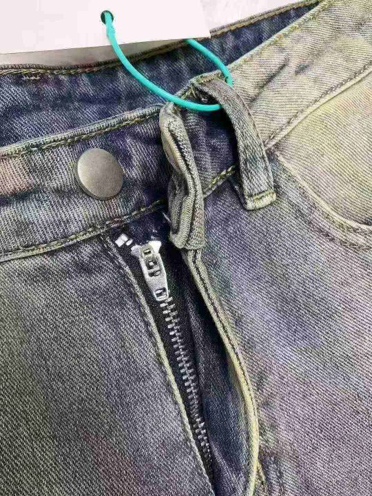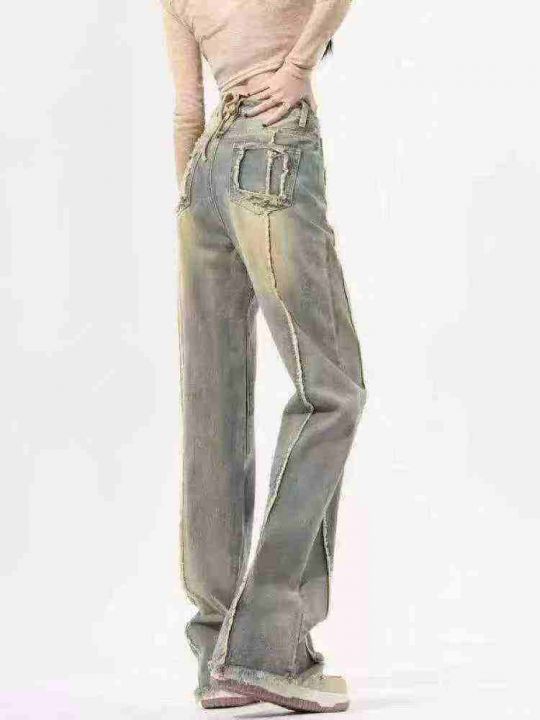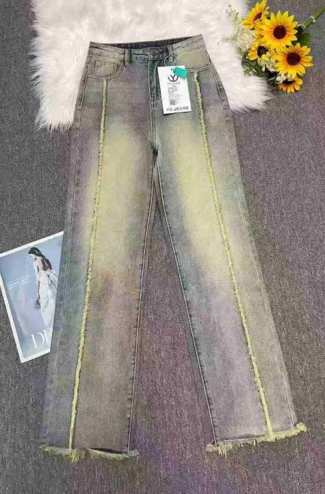 秋冬新款洗水棉网红高街高腰美式复古辣妹直筒黄泥染牛...