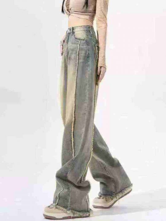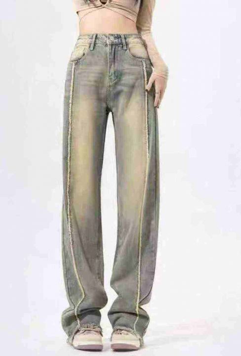 秋冬新款洗水棉网红高街高腰美式复古辣妹直筒黄泥染牛...