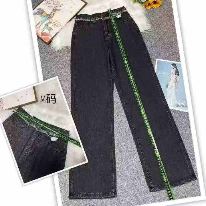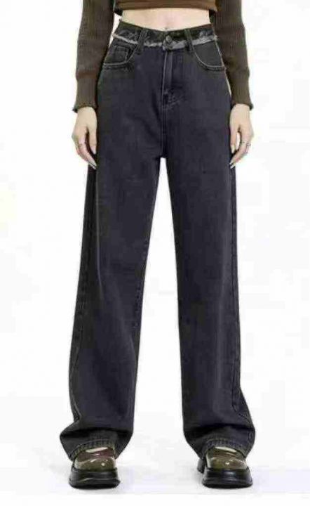 春秋新款洗水棉网红复古直筒阔腿牛仔裤,独立包装带腰...