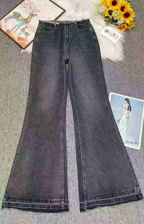 春秋新款辣妹复古阔腿喇叭牛仔裤,独立包装带吊牌,码...