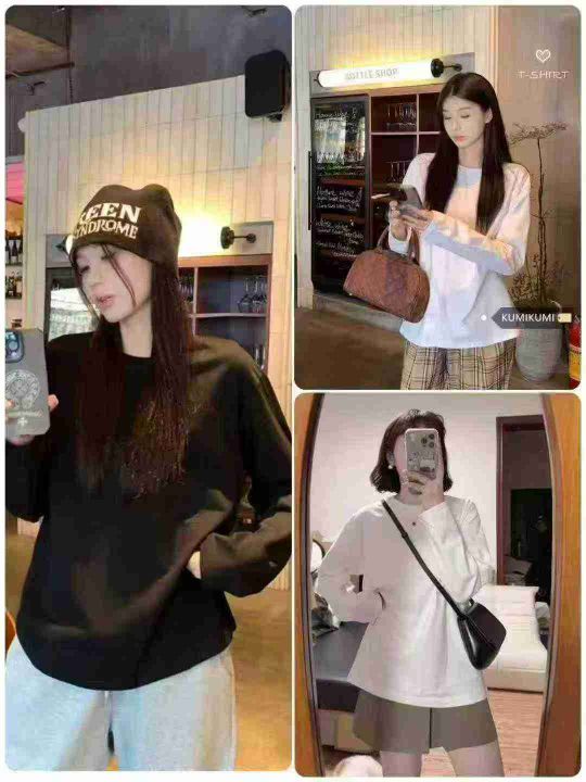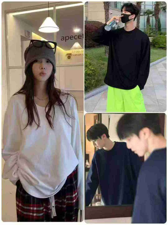 工厂回收4295件纯棉重磅200克纯棉宽松大版纯色长袖t恤,码数S-2XL。高品质款,后领包边到肩,面料柔软舒适,10件一包。分货➕0.5