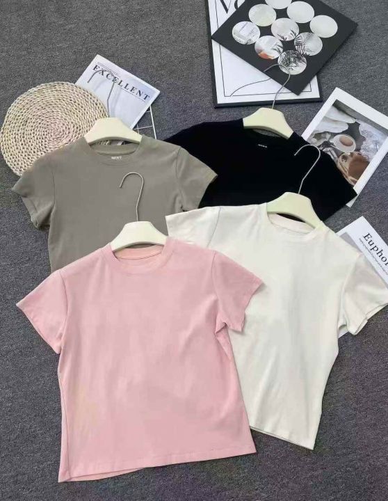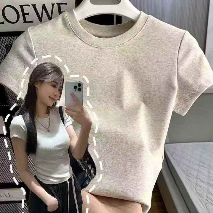☕️纯棉辣妹T恤854件全清7.8元,分货8.8元,码数S到XXL,10件一包装,白色杏色多点,纯棉正肩辣妹短袖T恤女夏季高级感百搭显瘦修身纯棉上衣打底衫
