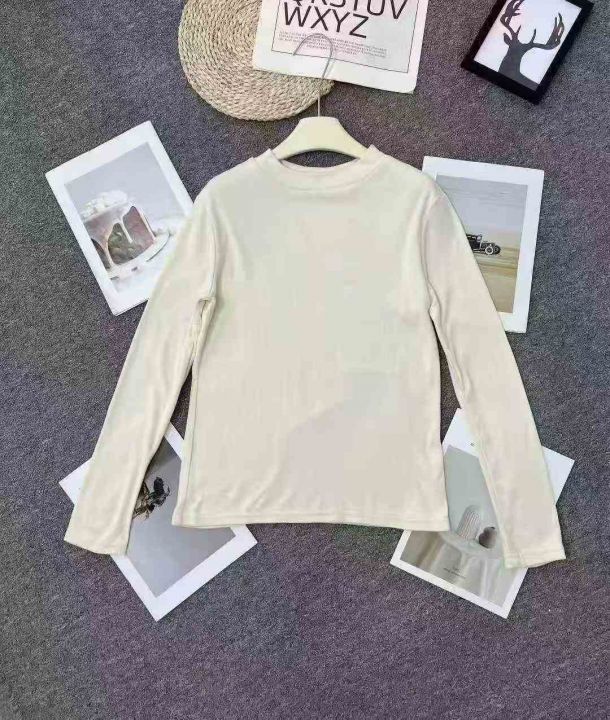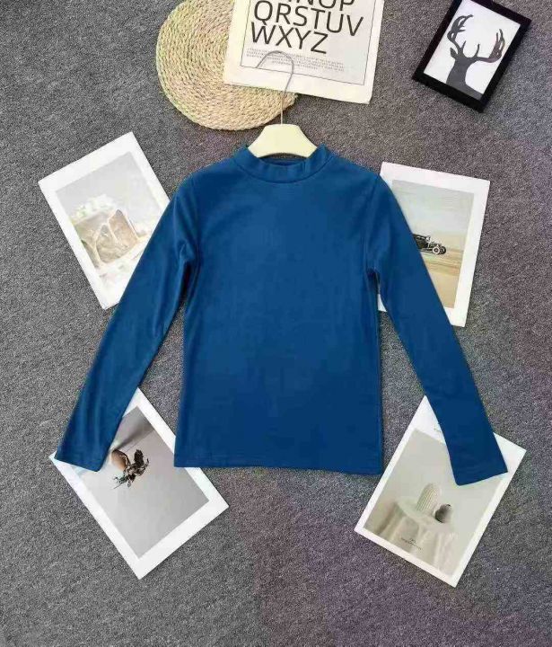 秋冬新款时尚净版简约半高领保暖德绒打底大码宽松慵懒风长袖t恤,独立包装...