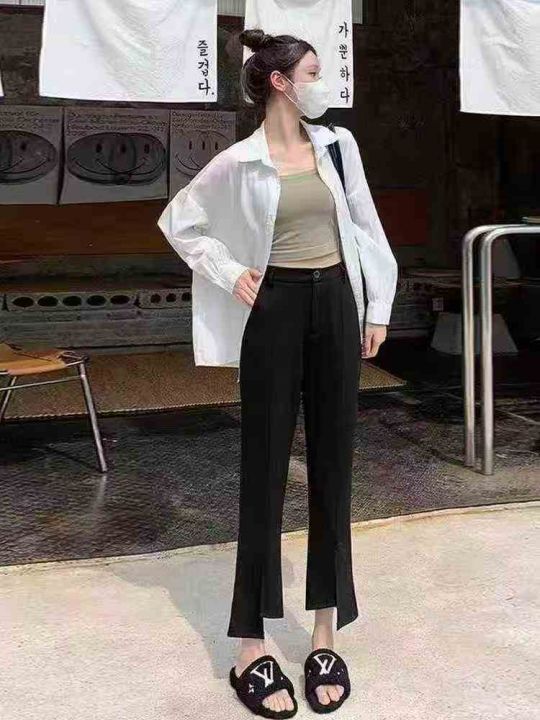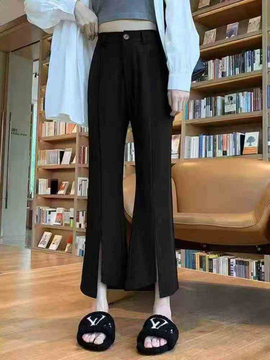 ☕️开叉西装裤女春秋新款高腰显瘦胖mm大码阔腿裤不规则微喇叭裤2187条全清10.8元,分货➕1元,码数S到3XL,独立包装,内里包边,精致做工好面料西裤