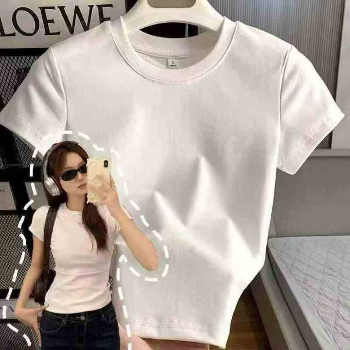 ☕️纯棉辣妹T恤854件全清7.8元,分货8.8元,码数S到XXL,10件一包装,白色杏色多点,纯棉正肩辣妹短袖T恤女夏季高级感百搭显瘦修身纯棉上衣打底衫
