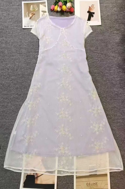4600件高品质盛夏气质收腰显瘦修身长款连衣裙,工艺绣花,单款单色,独立包装,码数M-L。