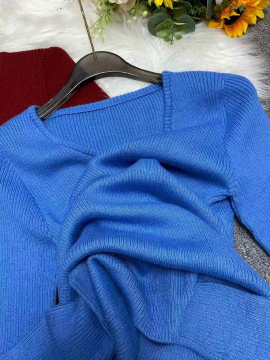 秋冬新款净版简约弹力修身显瘦V领包芯纱套头毛衣,独...