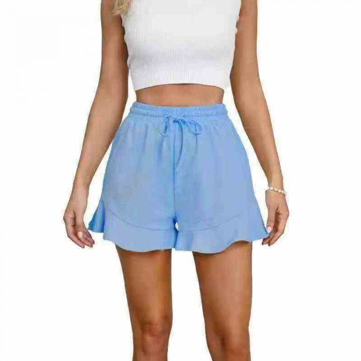 830条高品质棉麻荷叶边松紧腰抽绳设计短裤,宽松休闲大版型,单款多色,品...