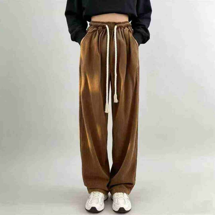 全清7.8厚款灯芯绒裤子男女同款,松紧腰粗绳直筒阔腿...