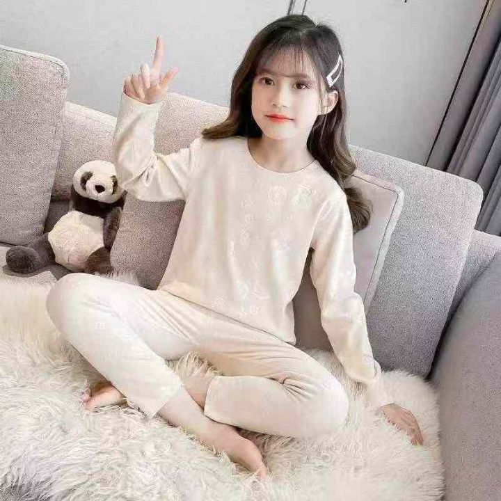 [月亮]:潮童压花满印德绒家居保暖打底套装