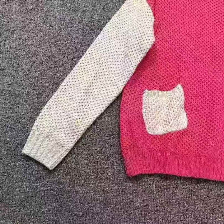 外贸原单春秋女士开衫提花西瓜红半袖中袖V领修身收腰百搭针织衫,高弹力,独立包装,Xs-L码,750件,全清3.5,分货➕0.5