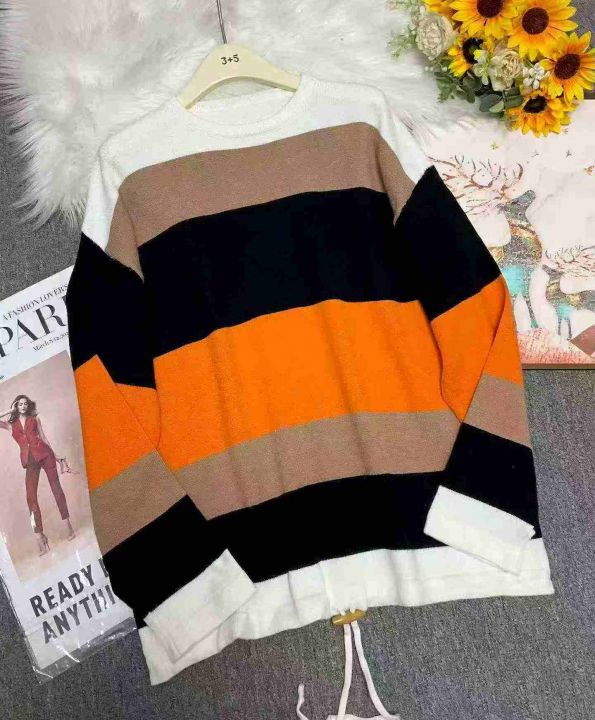 捡漏款,春秋新款宽松大版撞色条纹设计款圆领包芯纱套头毛衣,独立包装,码数XL--4XL码,56件,全清7.9元超低价秒杀!
