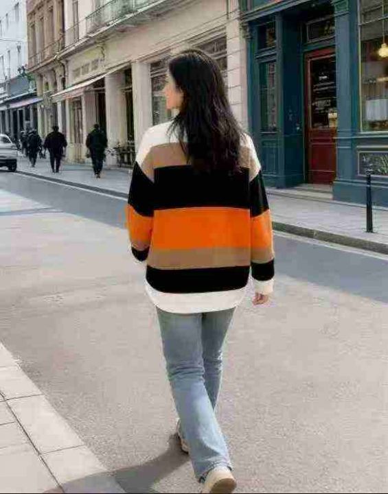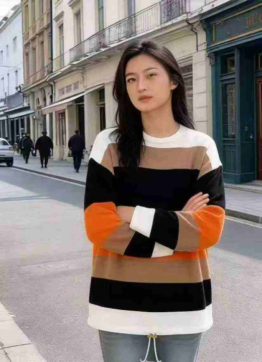 捡漏款,春秋新款宽松大版撞色条纹设计款圆领包芯纱套头毛衣,独立包装,码数XL--4XL码,56件,全清7.9元超低价秒杀!