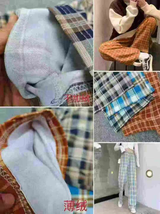 全清价6.9元气质薄绒直筒格子裤宽松显瘦高腰秋裤,独...