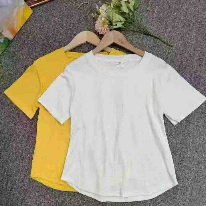 新款不规则短袖复古气质圆领修身弧形下摆螺纹T恤女,整款4色,有后领包边,1-5码,独立包装,弹力超大,900件左右,5.8清,分加1