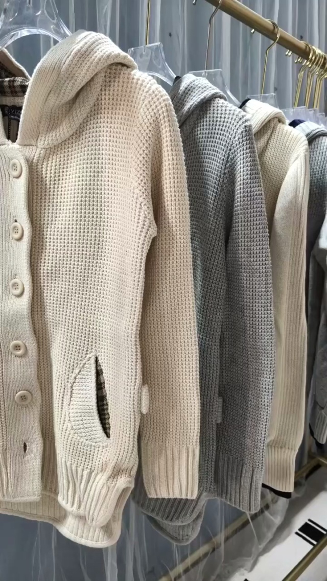 针织开衫300件左右独家货源:商场下架高品质开衫,两个款两个色,米白...