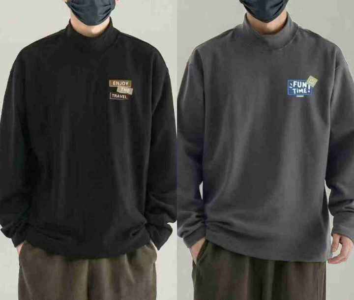2000件左右青年百搭时尚德绒打底ins潮牌美式字母印花半高领套头上衣,码数M—3XL,独立包装