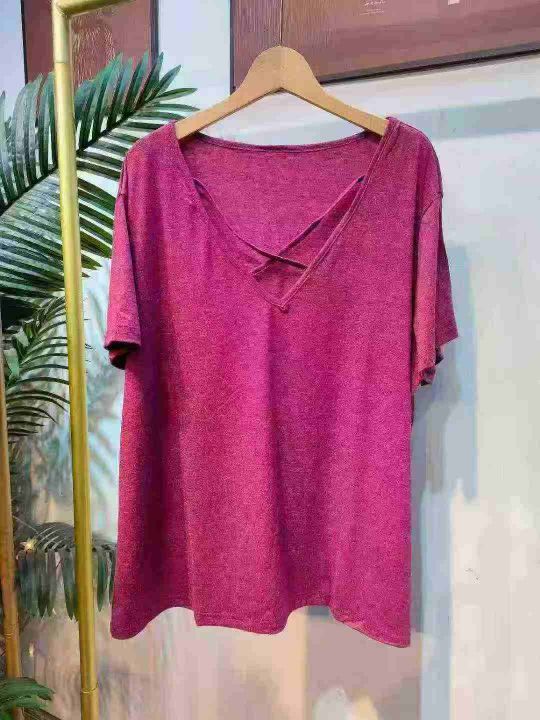 800件大码女装夏季V领交叉宽松休闲T恤上衣 单款三色,XL-5XL码 独立包装。