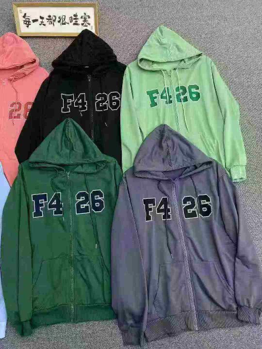 宽松版连帽拉链外套443件8.9,双层帽,图案刺绣,大口...