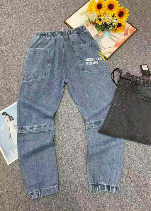 春秋新款松紧腰男士宽松百搭束脚牛仔裤,独立包装带吊...