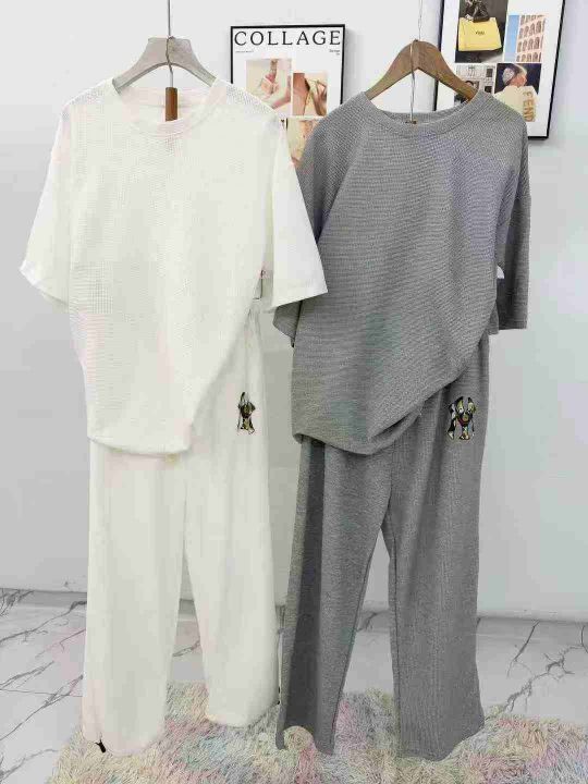 12.9清719套华夫格休闲套装运动服套装男夏季潮流拼色...