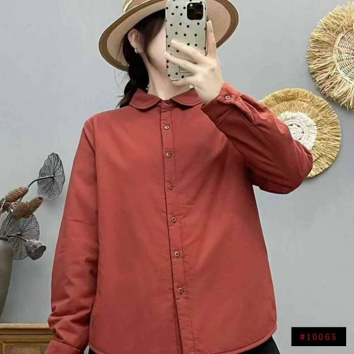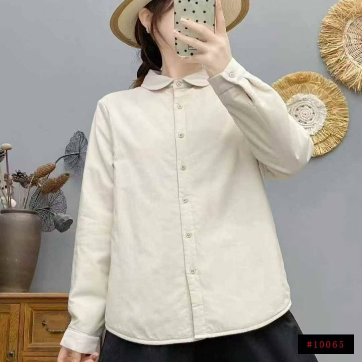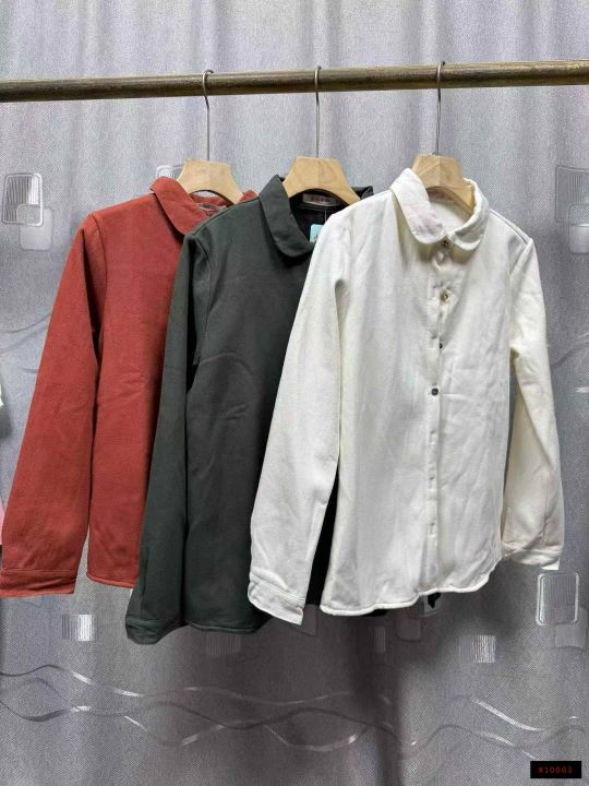 日系简约舒适加厚婴儿绒质感通勤减龄元宝领子母扣保暖长袖衬衫,面布纯棉质量好,独立包装,S - 2 x L码,380件左右,全清7.8块@_@