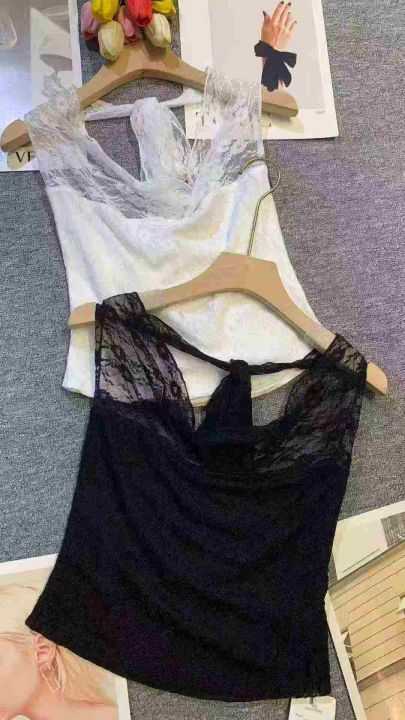 纯欲风甜辣蕾丝荡领挂脖两穿抹胸上衣,[爱心]135件左右,黑色为主,款号#1612,码数S-XL,穿70-120斤,万佳档口货,原包装️无瑕疵,[666]实体店品质