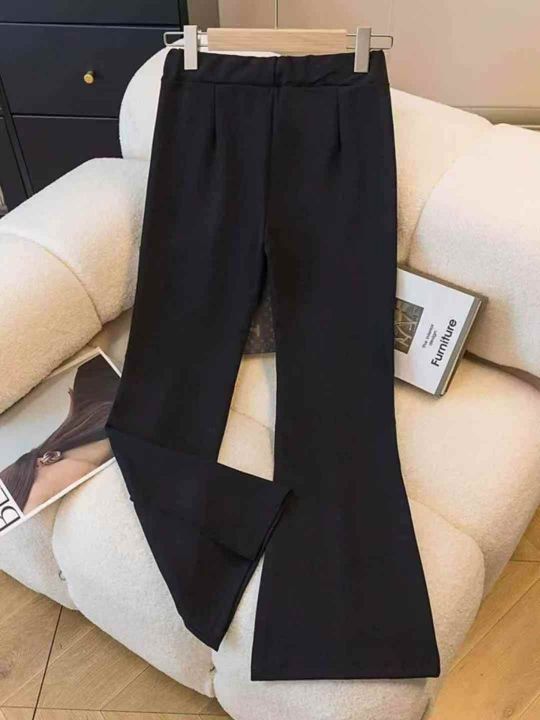 8.8清78条黑色微喇叭裤女款春秋2025松紧高腰垂感阔腿...