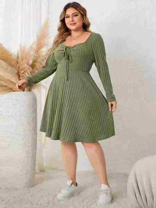 ① 欧美新款大码方领蝴蝶结连衣裙!独立包装,码数xL-...