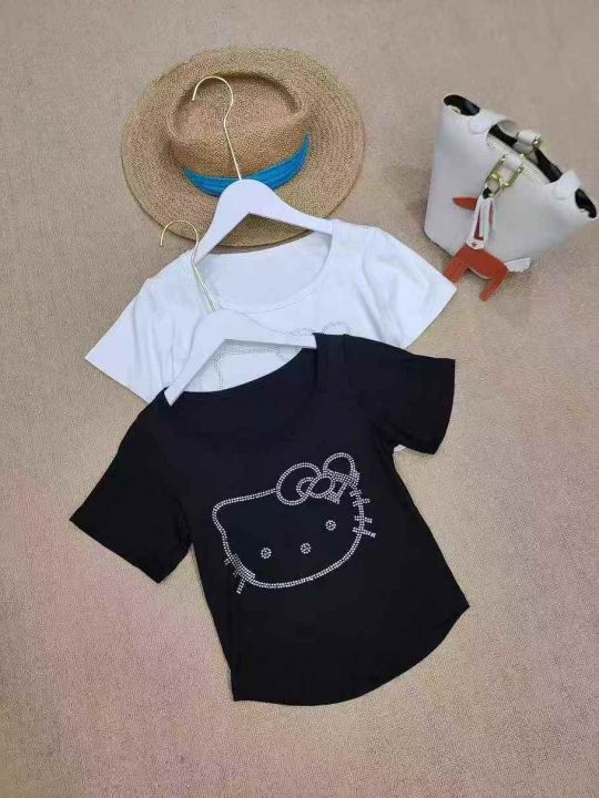 [月亮]:猫咪烫钻洋气短款气质辣妹短袖T恤