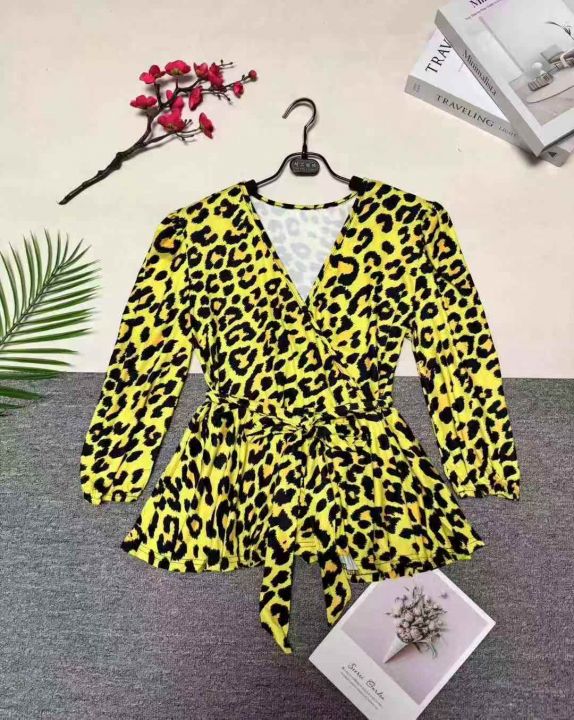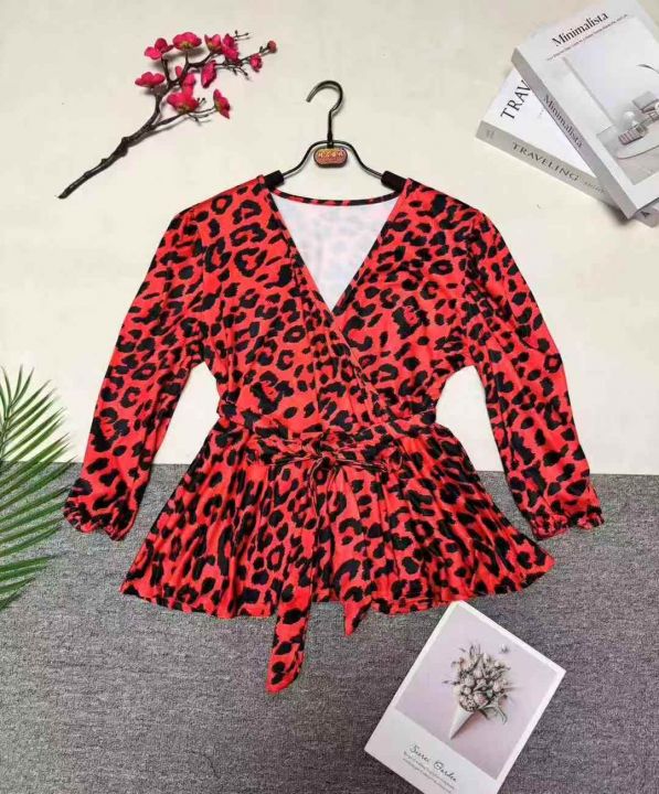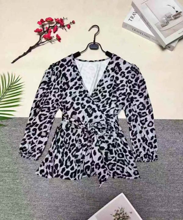 时尚豹纹印花女式上衣,整款四色,收腰设计,数量253件,码数S-XL,品质好,有独立包装。