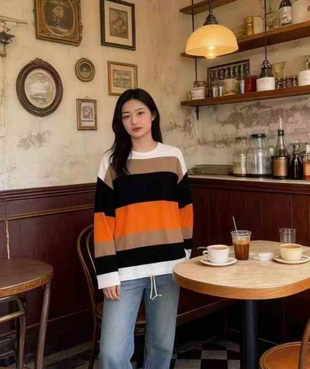 捡漏款,春秋新款宽松大版撞色条纹设计款圆领包芯纱套头毛衣,独立包装,码数XL--4XL码,56件,全清7.9元超低价秒杀!