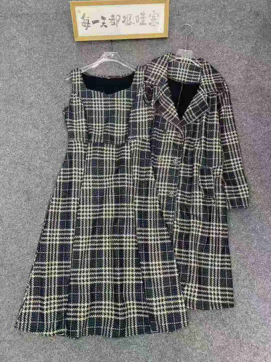 时尚气质两件套连衣裙114件14.8,格纹背心连衣裙,侧...