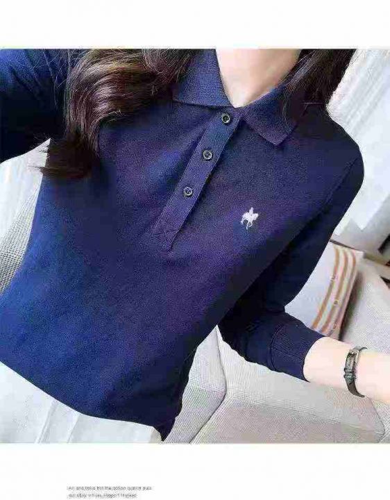 ☕️高品质品牌好货纯棉女装翻领POLO刺绣长袖T恤3110...