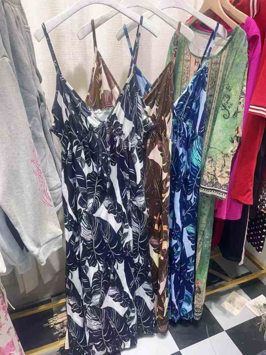 2025夏季欧美女装新款亚马逊度假长裙印花吊带露背v领连衣裙,独立包装,数量30件,码数xl-4xl,全清7.8。