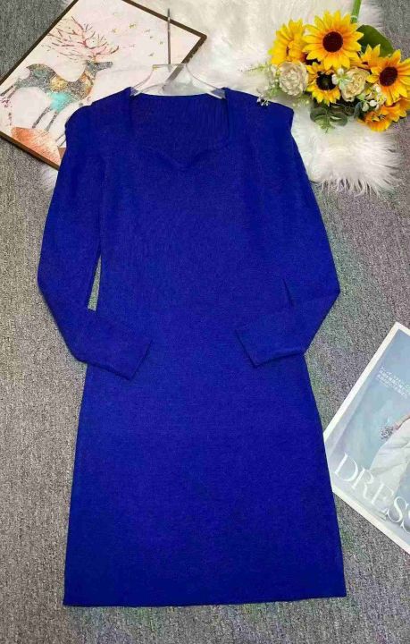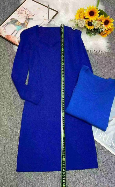 秋冬新款法式复古克莱因蓝弹力修身显瘦针织毛衣连衣裙,独立包装,均码年龄软糯舒适弹力大,170件,全清6.9元超低价秒杀!